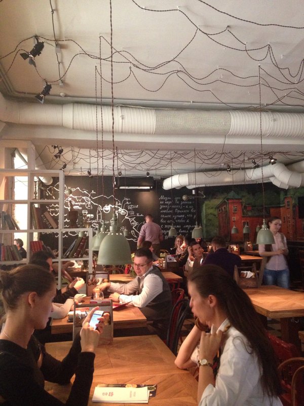 Интересное место, выбор большой чего покушать, только вот легких блюд не очень много, все тяжелое и на мой взгляд жирное. Официанты в меру веселы и в меру вежливы - редкое сочетание.