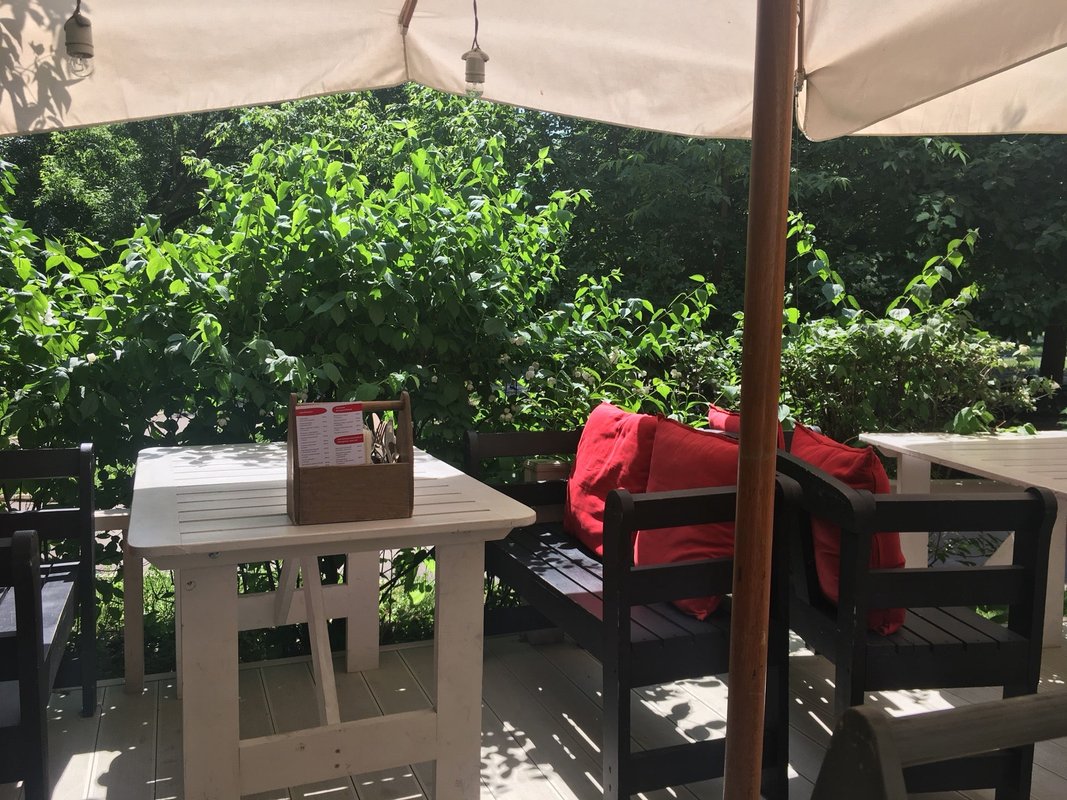 Если вы садитесь на террасе с ребёнком - выбирайте столик ближе к Кутузовскому, т.к. со стороны БДорогомиловской курят прямо рядом со столиками, и хостесс это не учитывает при рассадке.